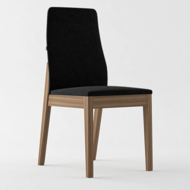 Silla con estructura de madera de paraíso, disponible en lustre natural (color paraíso), tabaco (tinte oscuro) o ébano (negro). Tapizadas en lino de diversos colores. Estos tres colores de patas combinados con los seis colores de lino posibilita una gran cantidad de combinaciones adaptables cómodamente a cualquier ambiente.